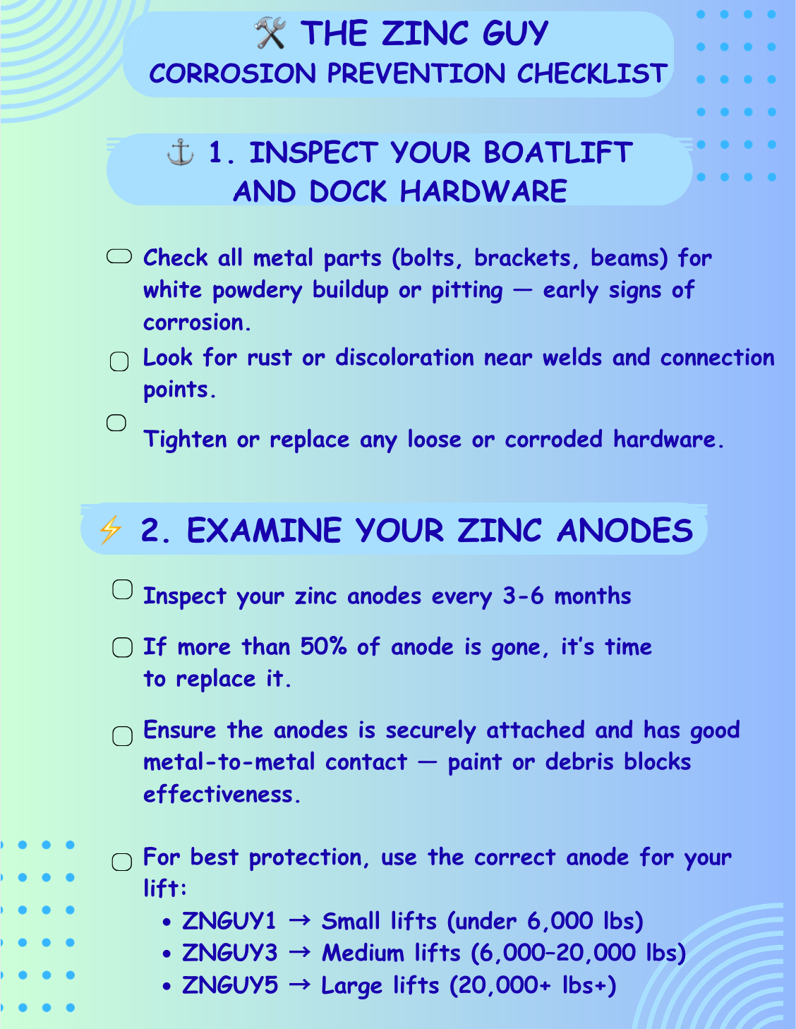We've designed hundreds of corrosion protection solutions for metal boats and underwater metal structures such as docks, boat lifts, and retaining walls.